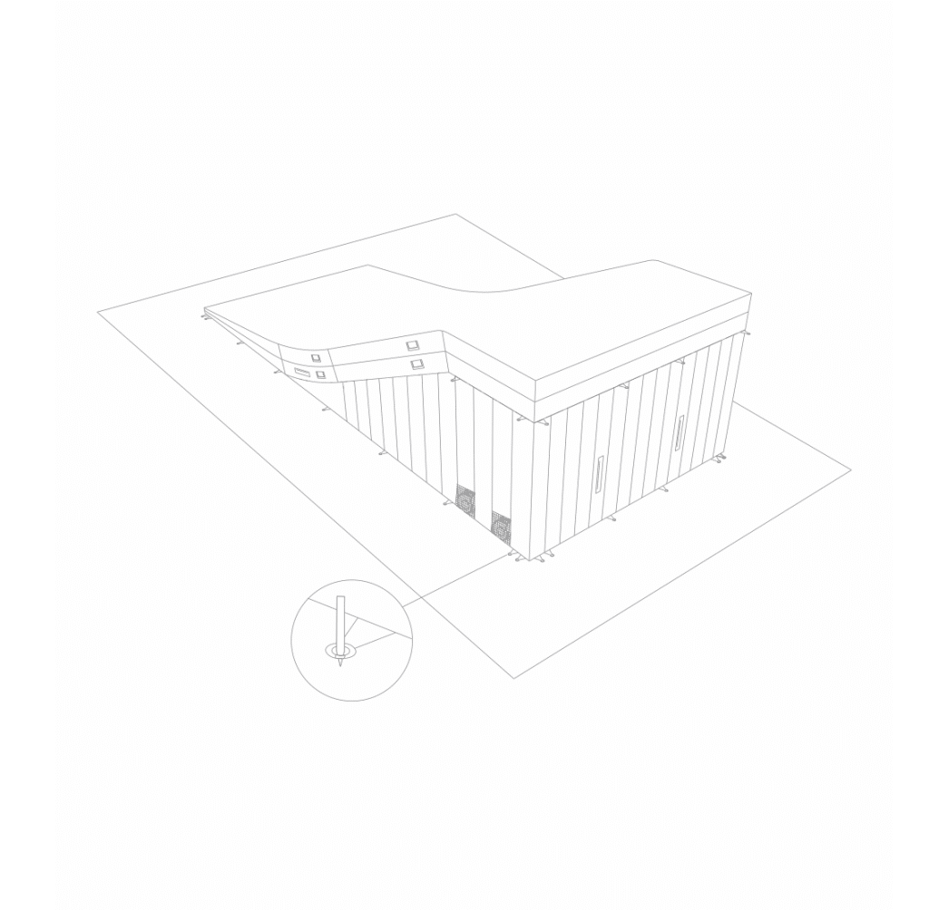 ● Attach the D-rings to ground stakes or pegs, and anchor them firmly into the ground.